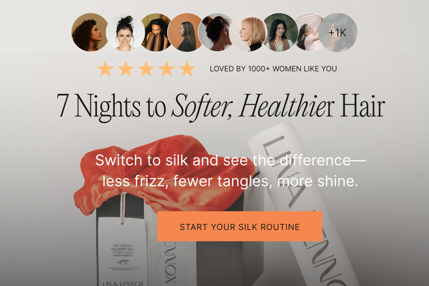 Nos hemos esforzado: hemos dedicado años a probar y perfeccionar cada detalle. Nuestra seda orgánica no solo es suave y lujosa, sino que está diseñada para retener la humedad, reducir el frizz y proteger el cabello con textura. Y, como es biodegradable, es tan respetuosa con el planeta como con tu cabello.